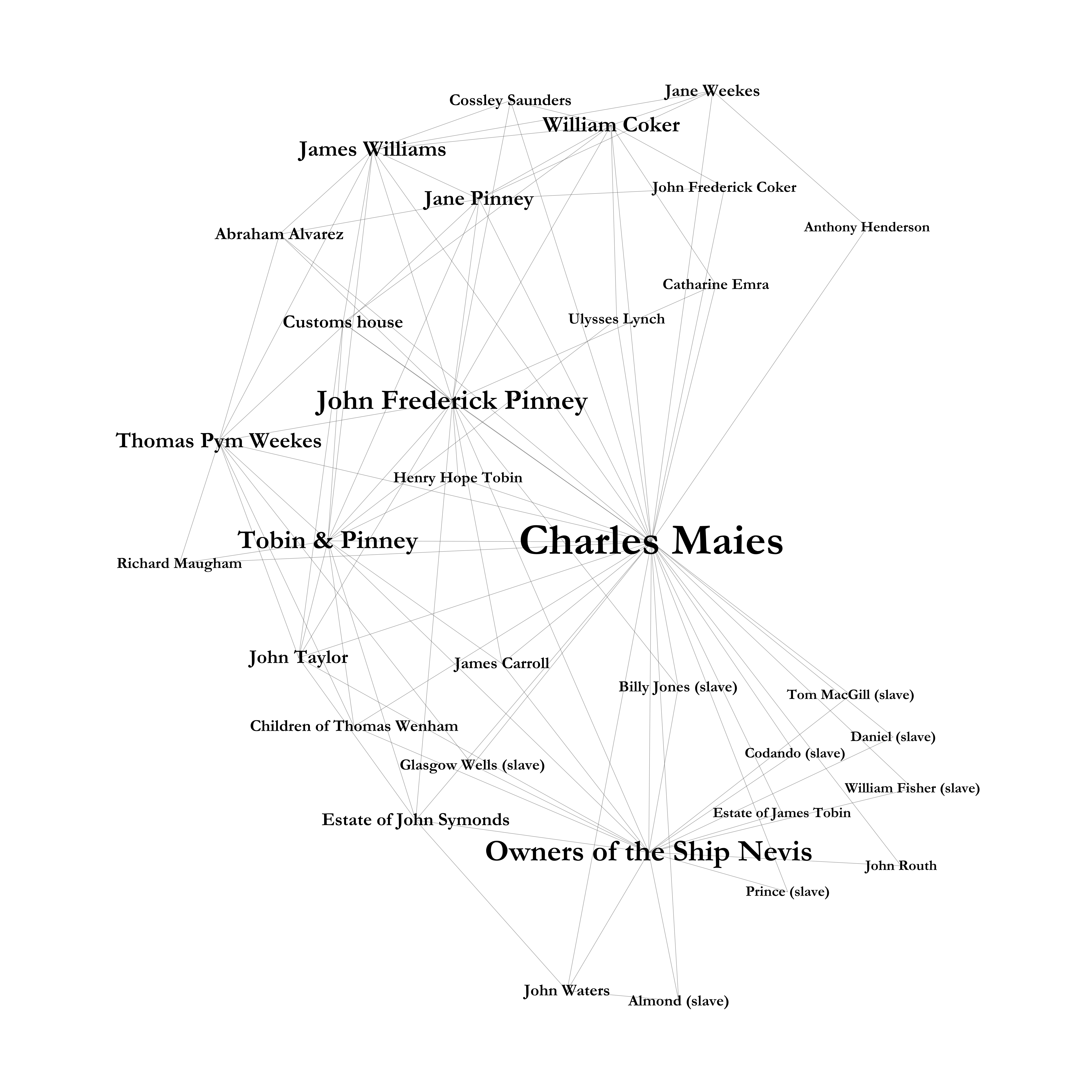 Figure 2.2: Charles Maies’ Network within John Pinney’s Nevis–Bristol network, 1783–1803CloseImageViewView image “Figure 2.2: Charles Maies’ Network within John Pinney’s Nevis–Bristol network, 1783–1803”Figure 2.2: Charles Maies’ Network within John Pinney’s Nevis–Bristol network, 1783–1803Uploaded September, 2023