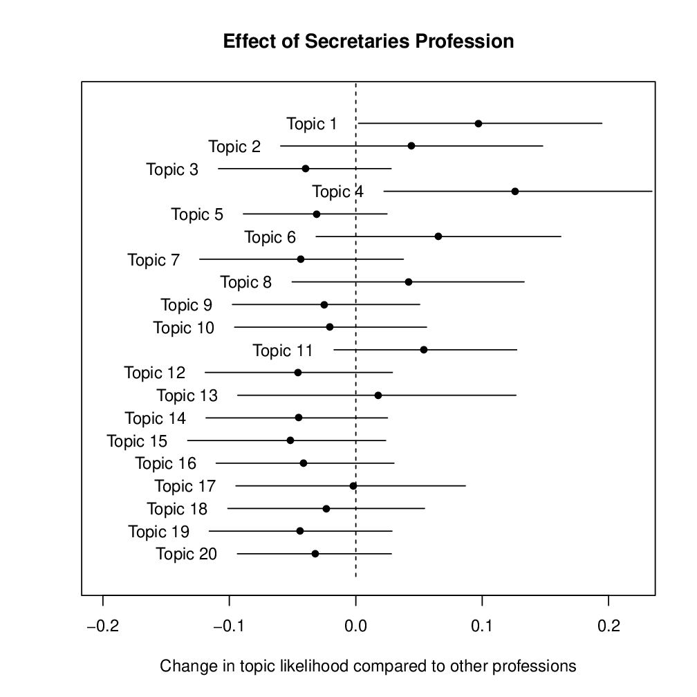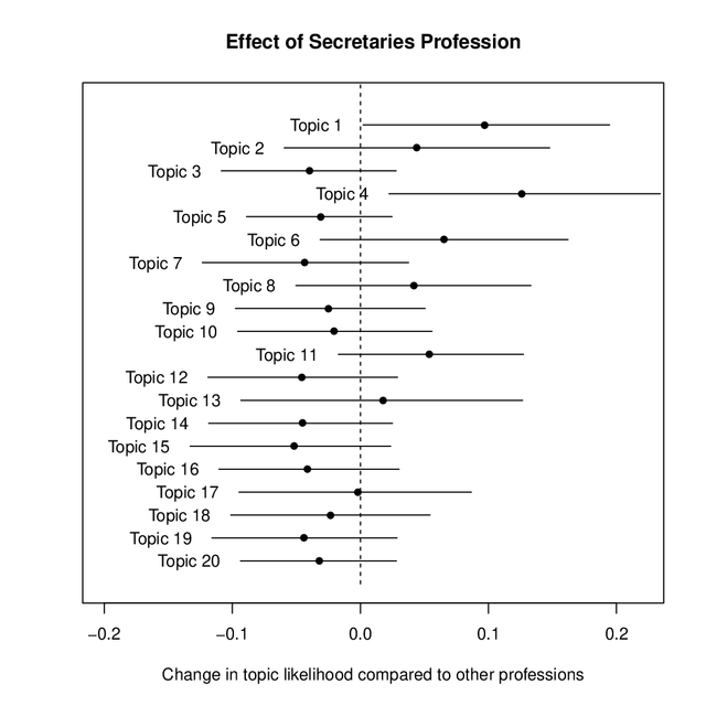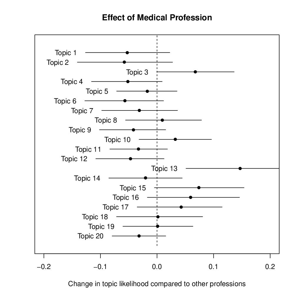 Uploaded UploadedChange in likelihood that a letter on a given topic was written by an author in the medical profession compared to all professions