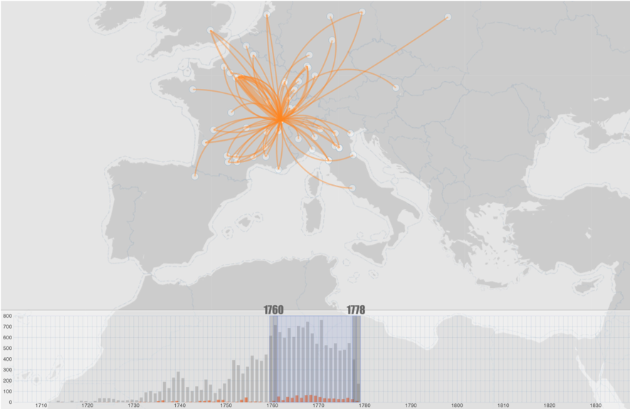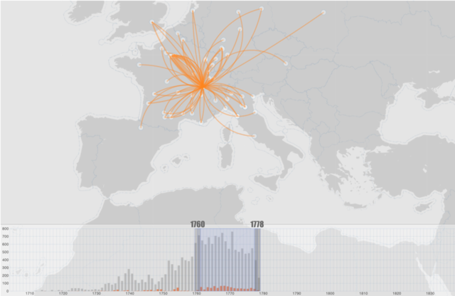 UploadedScreenshot from ‘RoflViz’ showing Voltaire’s with year bound from 1760-1778