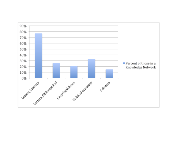 This graph shows the percentages of each knowledge network based on the subset of salon attendees who belonged to a knowledge network.