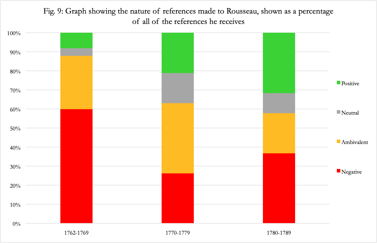Figure 9: Graph showing the nature of references made to Rousseau, shown as a percentage of all of the references he receives.