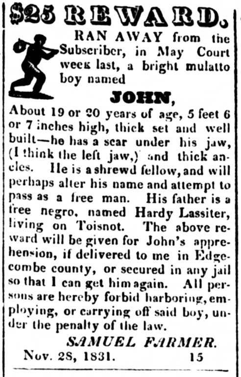 [E] Runaway slave advertisement posted by Samuel Farmer (1831)