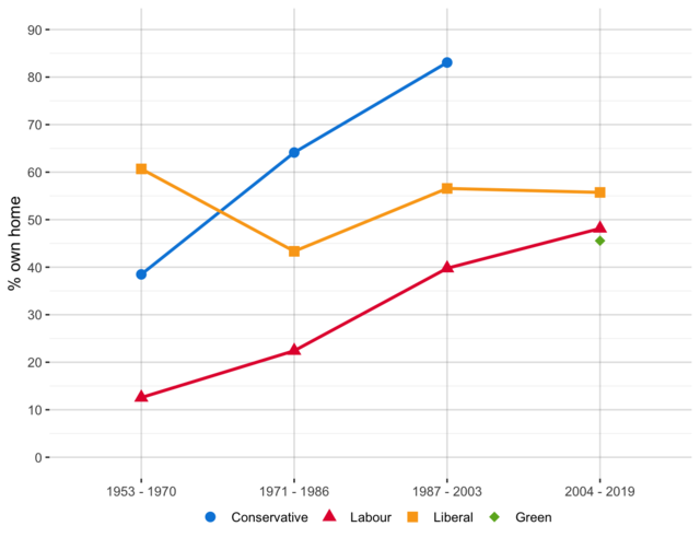 Average percentage of homeowners in wards won by each party.