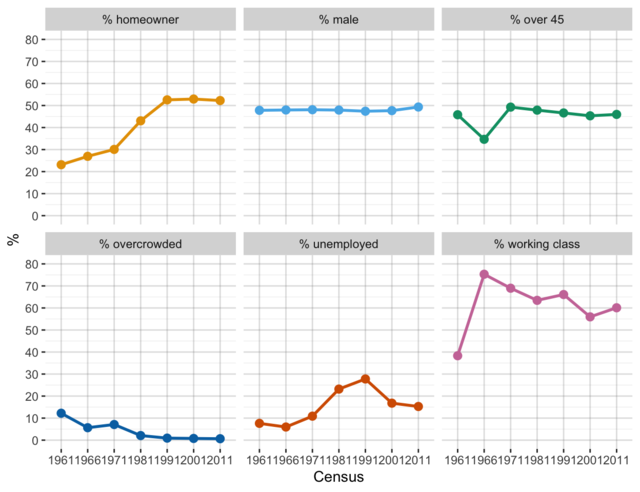 Demographic changes in Liverpool, by census (average of wards).